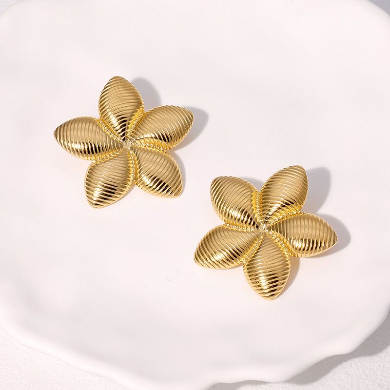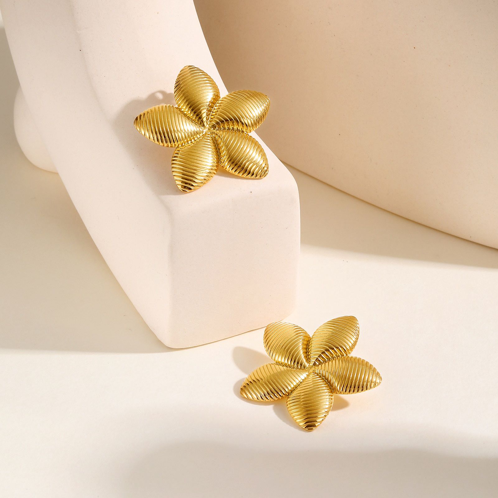 Make a bold yet elegant statement with our Golden Bloom Statement Earrings. Designed for the modern woman who loves a touch of nature-inspired beauty, these earrings feature a stunning five-petal floral design with intricate textures that catch the light beautifully. Their radiant gold finish adds a timeless charm, making them perfect for both everyday wear and special occasions.