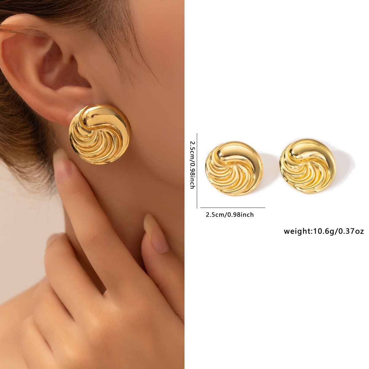 Elevate your jewelry collection with these Luxe Spiral Gold Studs, a perfect blend of classic elegance and modern sophistication.