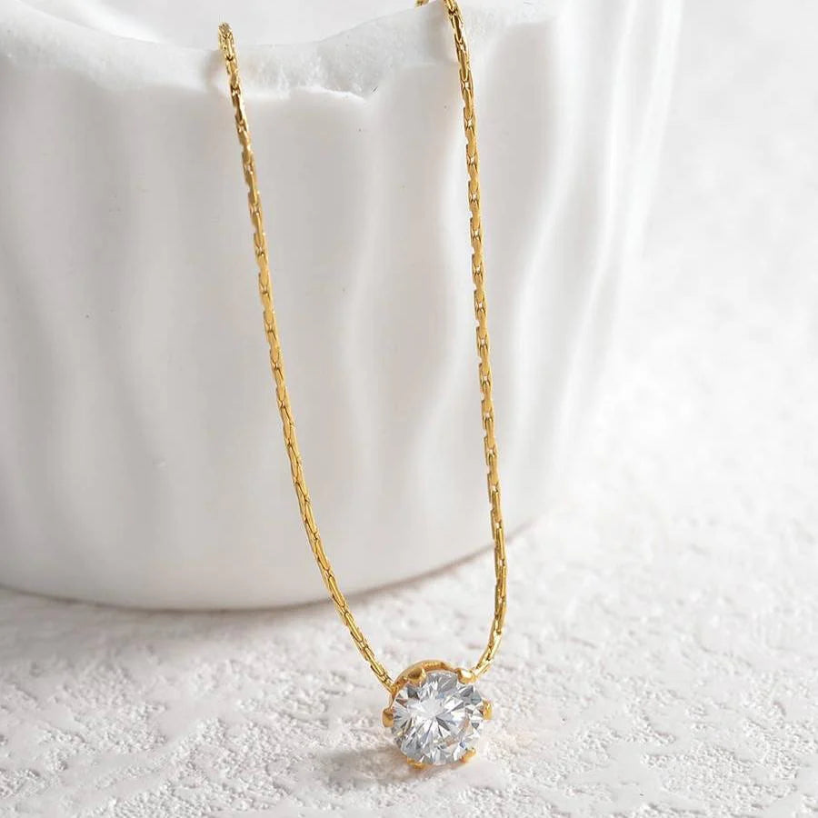 Add a touch of timeless elegance to your style with the Radiance Solitaire Necklace. Featuring a brilliant solitaire stone delicately set in a golden prong design, this necklace is the perfect blend of simplicity and luxury.