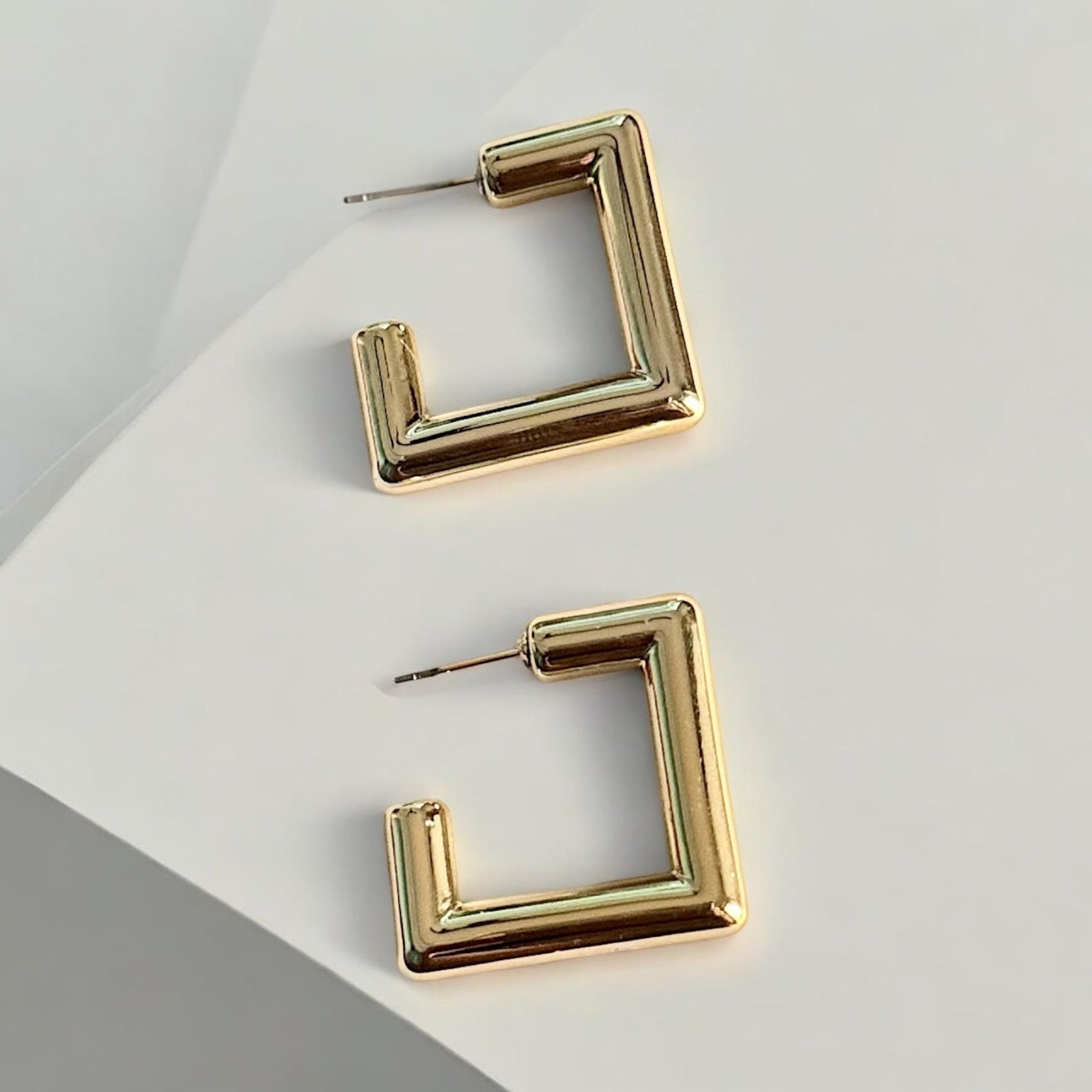 Add a touch of modern sophistication to your style with these stunning Square Luxe Hoops. Featuring a sleek, contemporary design, these earrings are perfect for both casual outings and formal events. Lightweight and easy to wear, they provide just the right amount of elegance to elevate your look. Whether you're heading to the office or a dinner date, these square studs are your go-to accessory for effortless charm.