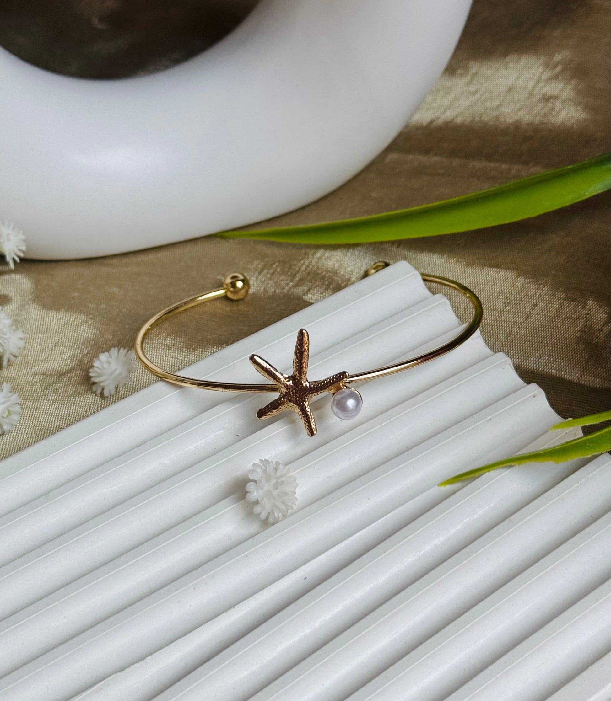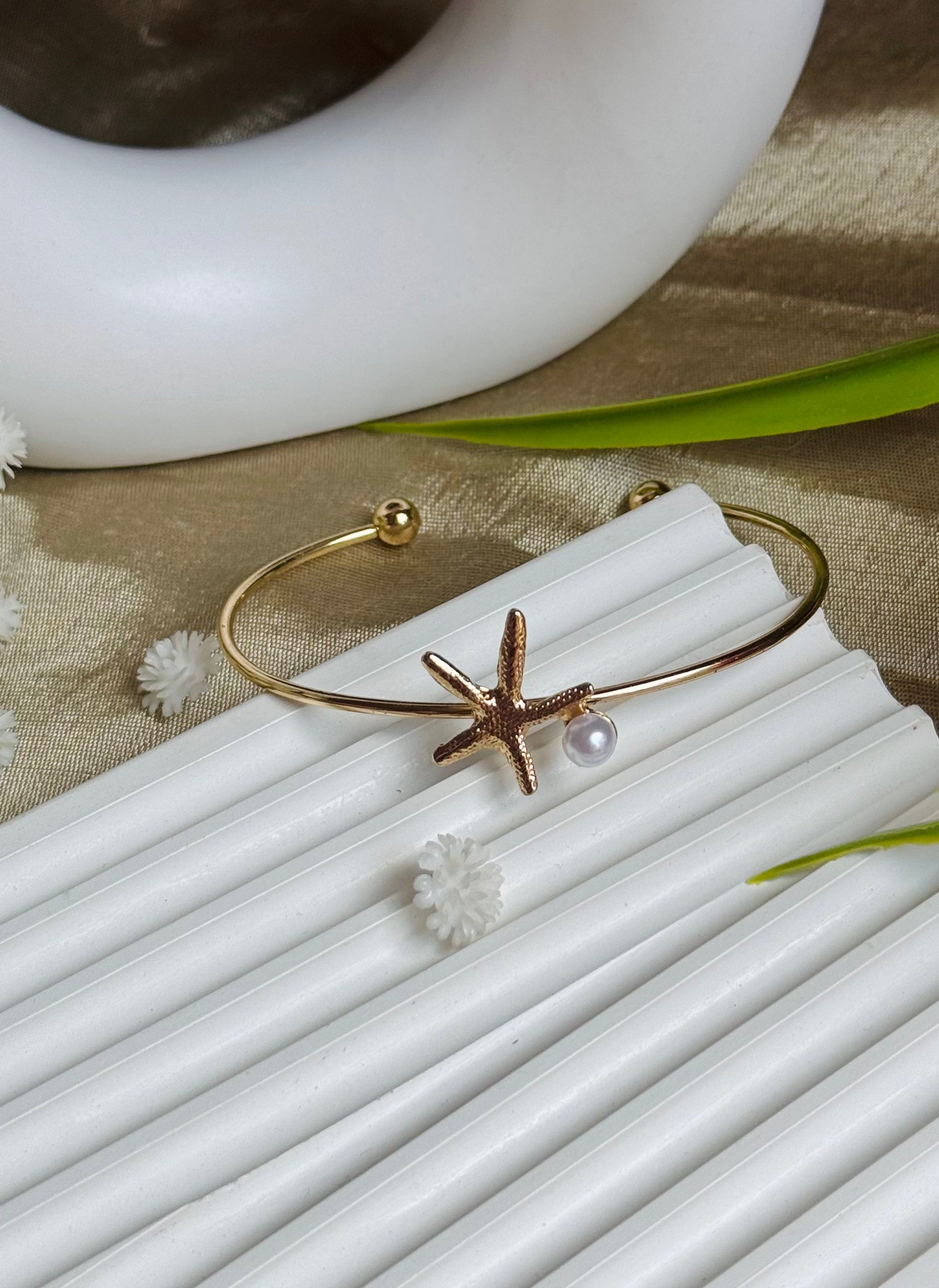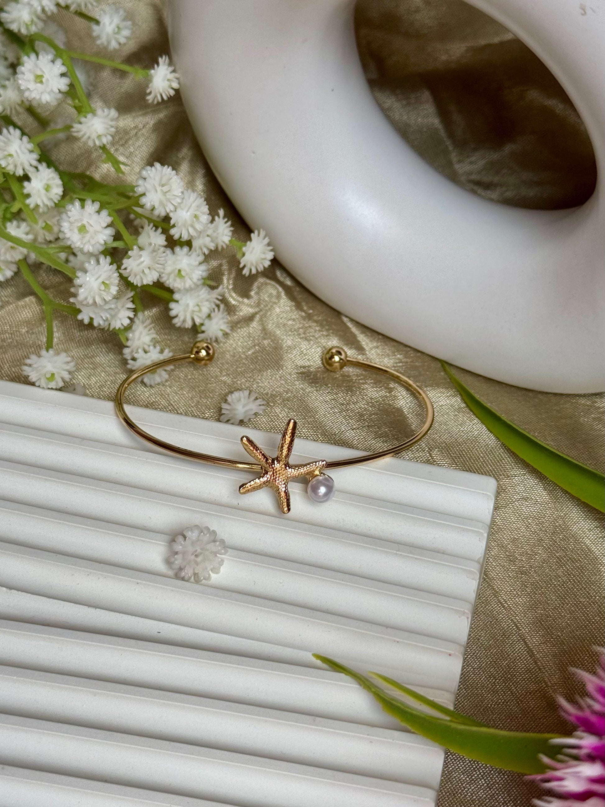 Let the ocean’s charm wrap around your wrist with the Starfish Pearl Bracelet — a dreamy blend of elegance and coastal vibes. Featuring dainty faux pearls and a gold starfish charm, this bracelet is a subtle nod to beachside bliss and carefree spirit.